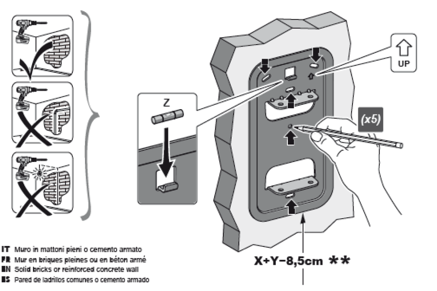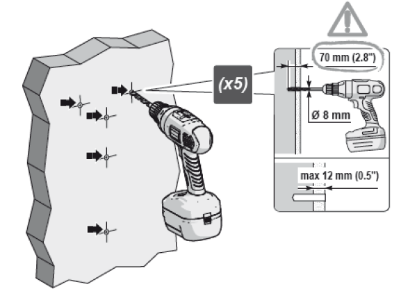Si raccomanda di eseguire i fori in una parete della profondità e diametro prescritti. In seguito, rimuovere dai fori stessi, polvere e detriti.