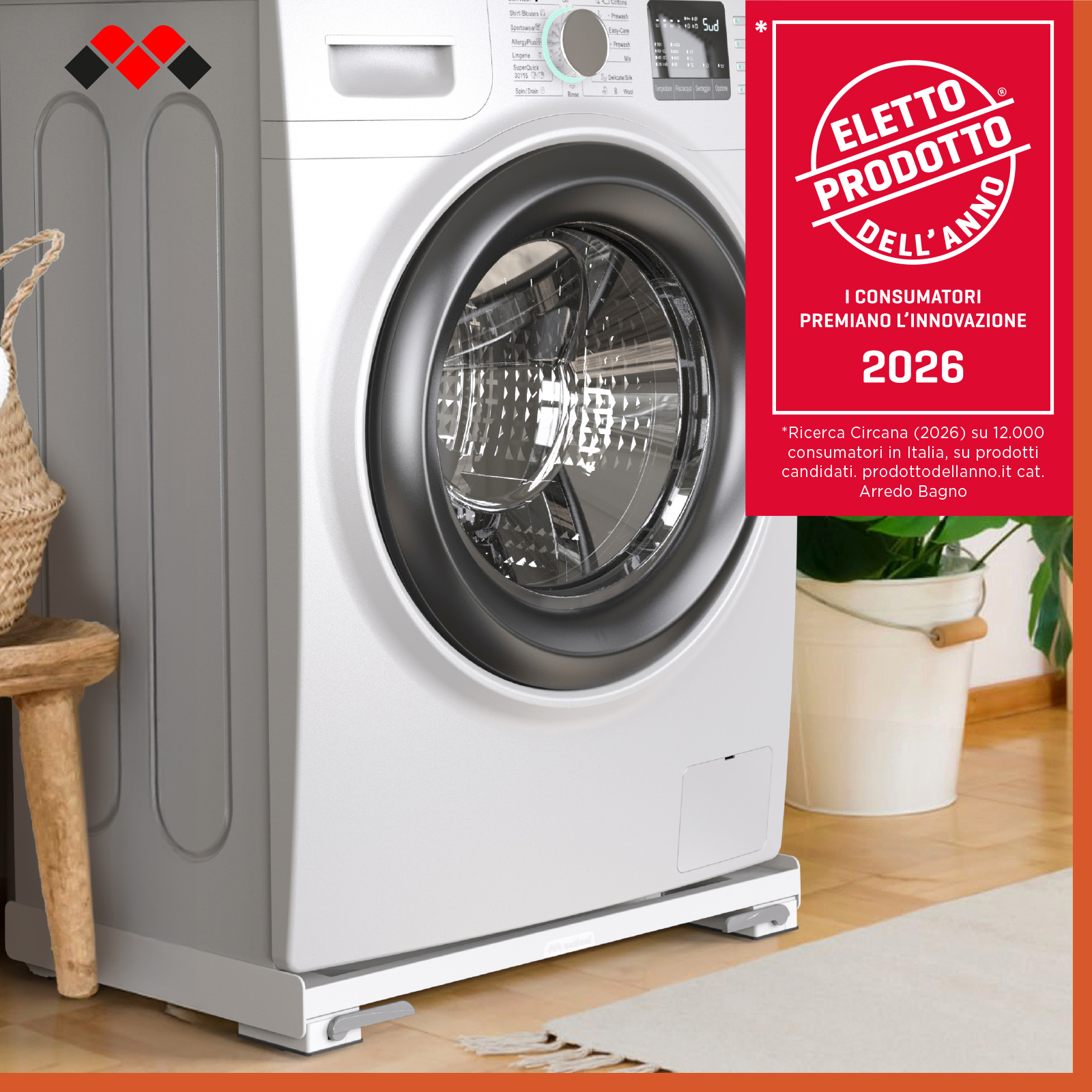 Choose the Meliconi Base Move Slim washing machine base for a practical, stable, and environmentally friendly solution for your appliances.